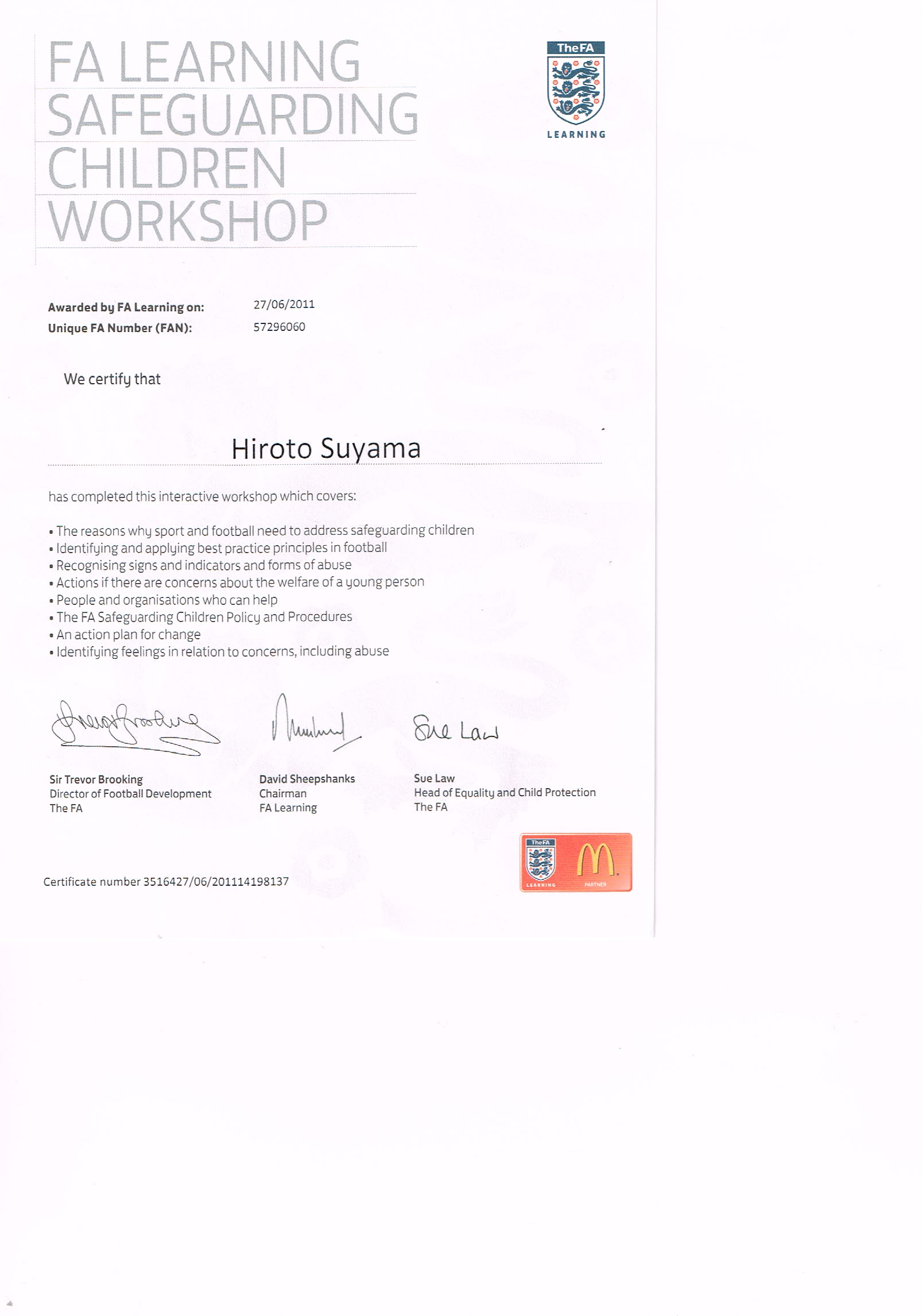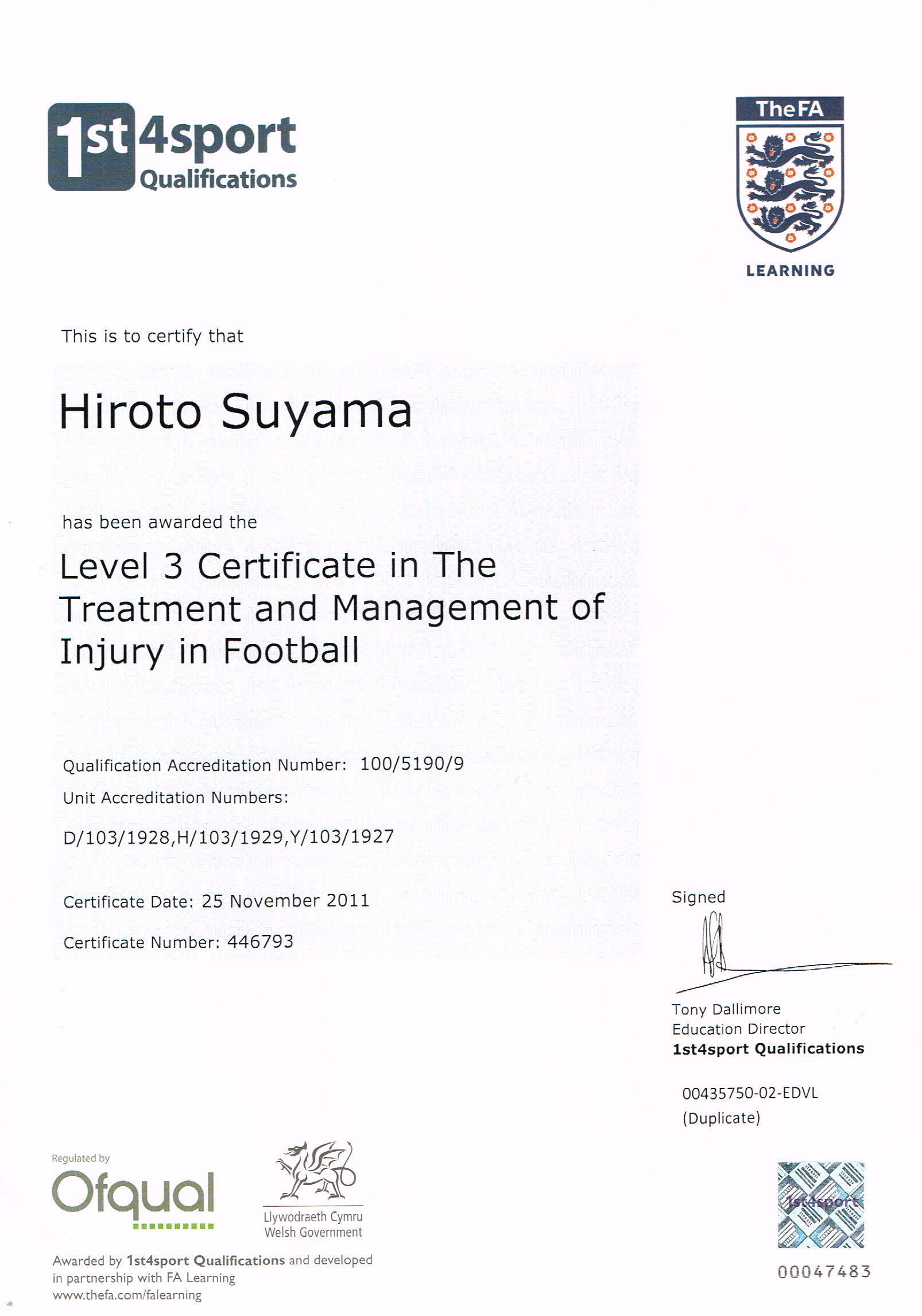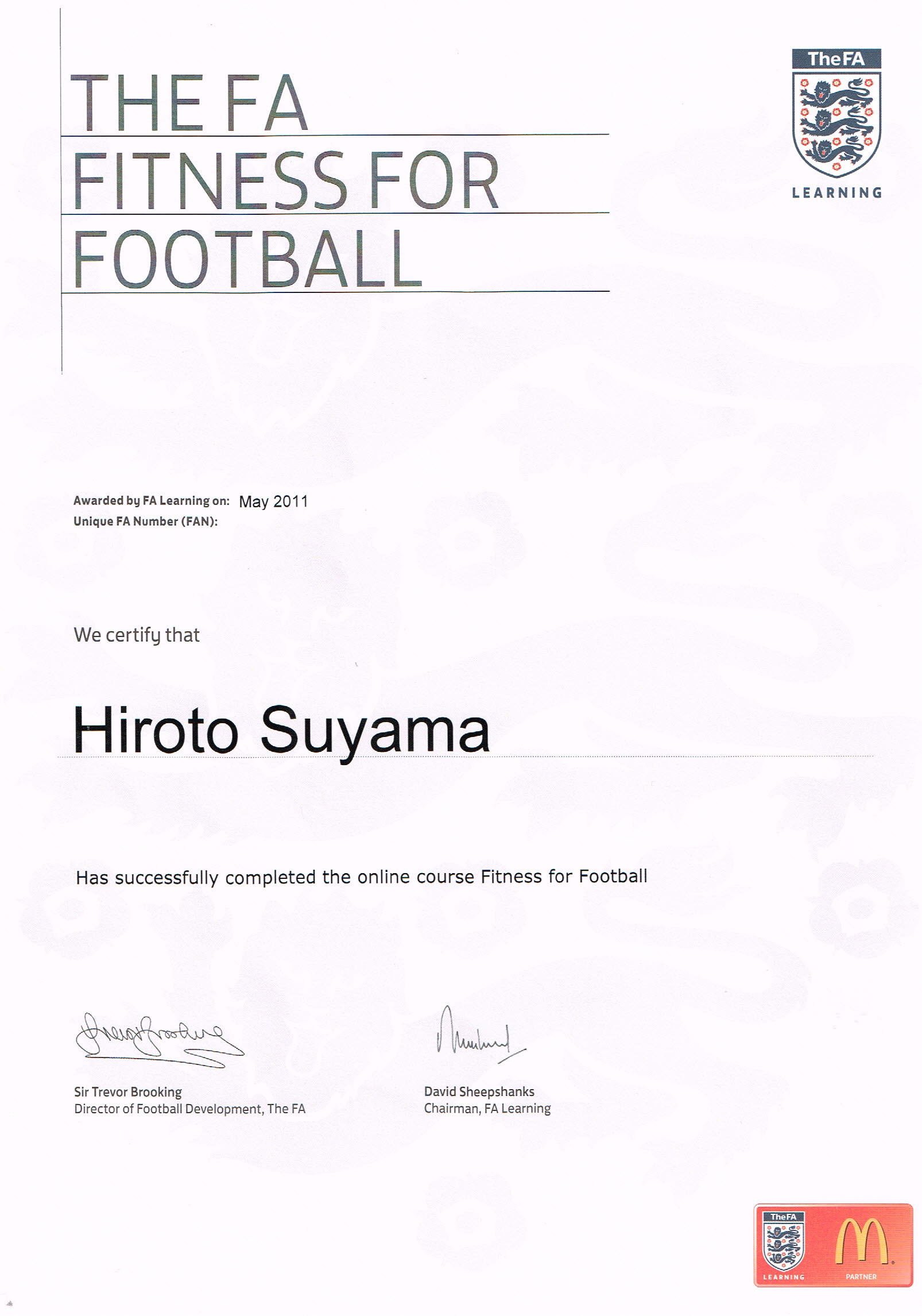 Qualification ■資格■ •FAメディカルライセンスレベル1、2、3 取得 •FAコーチングライセンスレベル1、2 取得 •UEFA Bコーチングライセンス 受講中 •Prozone フットボール分析学ライセンス レベル1、2、3取得 •Chelsea Football Club Session Compleate 共有: クリックして X で共有 (新しいウィンドウで開きます) X Facebook で共有するにはクリックしてください (新しいウィンドウで開きます) Facebook いいね 読み込み中…